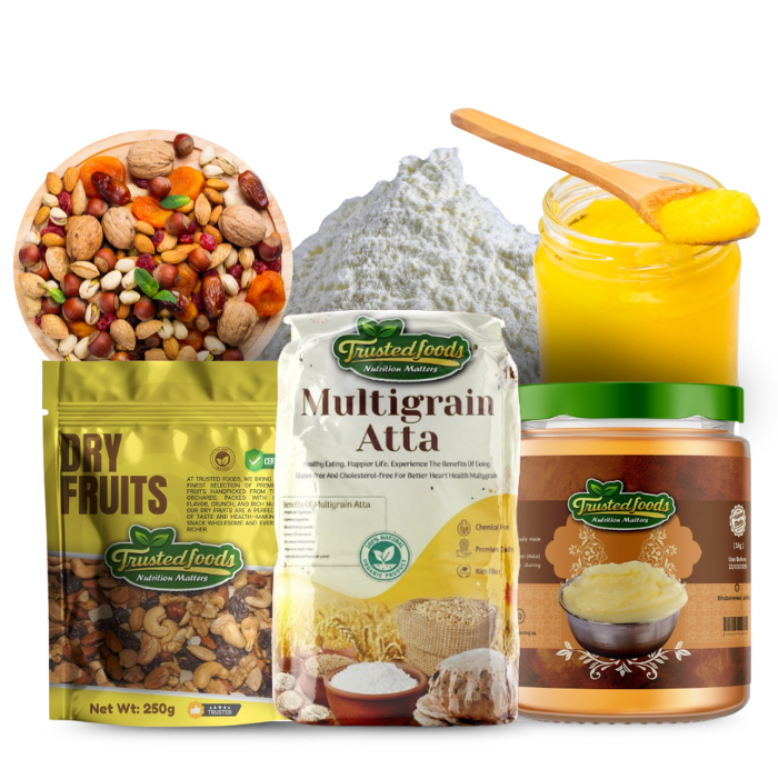 At Trusted Foods, we combine tradition with nutrition. Our products are clean, wholesome, and tailored to your health needs — from handpicked nuts and seeds to cold-pressed oils, gluten-free atta, and herbal teas. We believe in purity, customization, and honest wellness for every lifestyle.